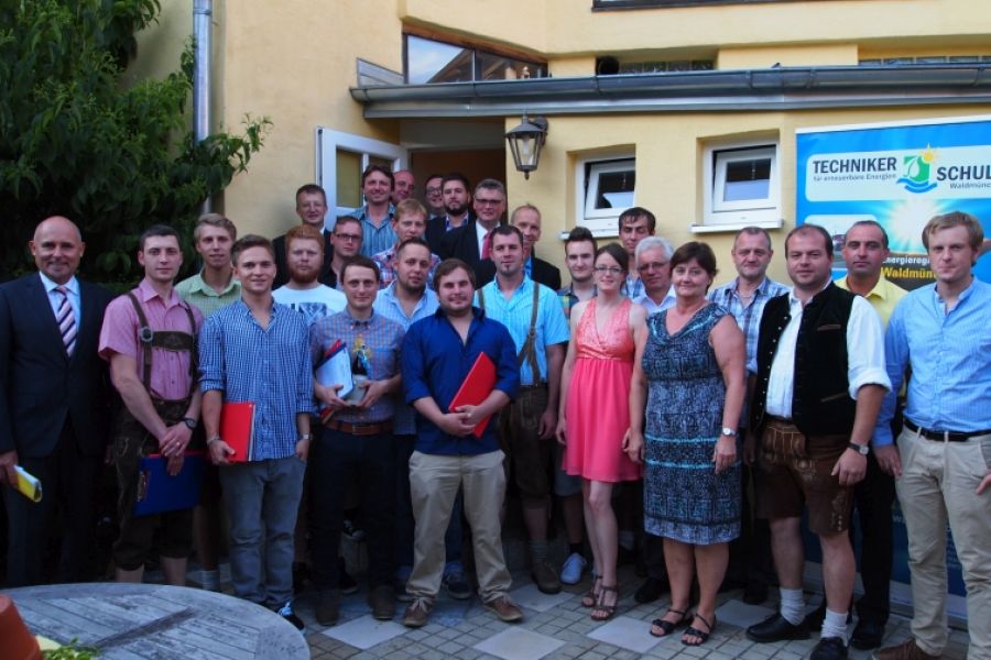 Nachdem Herr OStD Zistler (Direktor der Werner von Siemens Berufsschule Cham), Herr Bauer (Stellvertretender Landrat des Landkreises Cham) sowie Herr Ackermann (Bürgermeister der Stadt Waldmünchen) den Absolventen gratulierten, durfte Herr StD Wenzl im Anschluss an eine kabaretreife Zusammenfassung der vergangenen beiden Schuljahre den 13 Schülern des Jahrgangs die Abschlusszeugnisse zum Techniker für regenerative Energien aushändigen. Von den 13 Absolventen erlangten zudem sieben die Fachhochschulreife.