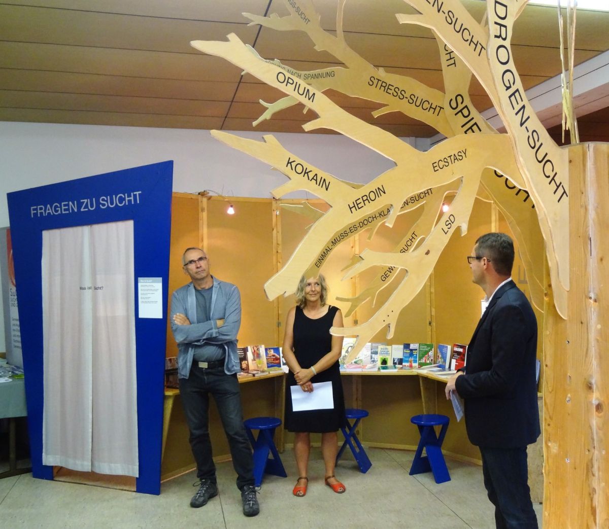 Stefan Mühlbauer (Berufsschule Cham) und Freia von Hennigs (Organisatorin der Ausstellung) begrüßten zahlreiche Gäste, darunter Vertreter der AOK (Sponsor der Ausstellung), von Behörden sowie der örtlichen Polizei. Mit drei Liedern umrahmte das "Ensemble Neue Horizonte" unter Leitung von Hermann Seitz die Veranstaltung. Die Klasse NHG 10a bereitete verschiedene erfrischende Cocktails vor.
