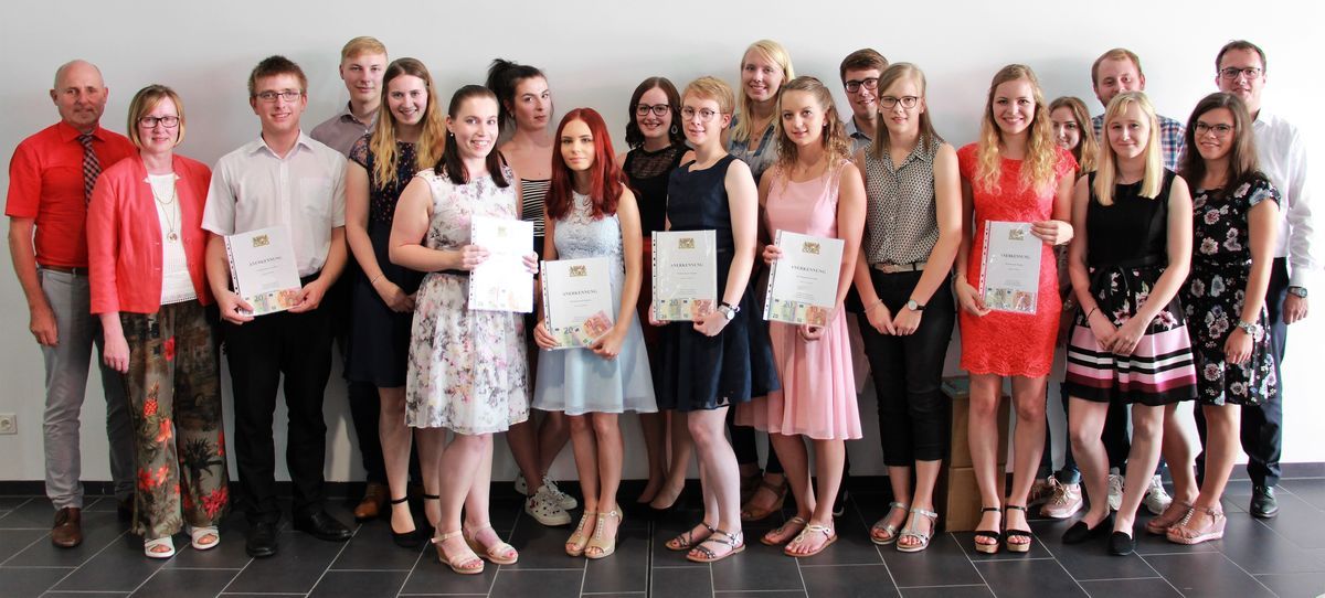 Zwölf kaufmännische Absolventen waren aufgrund ihrer herausragender Leistungen von 1,0 bis 1,25 bereits durch den Landrat geehrt worden. Für weitere zehn Schüler zahlten sich ihr Fleiß und Engagement ebenfalls aus, sie wurden für hervorragende Abschlussnoten zwischen 1,28 und 1,85 geehrt.