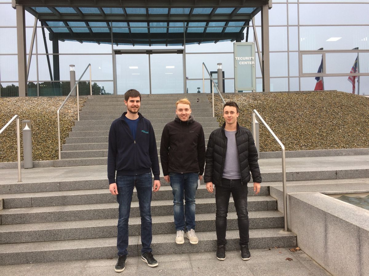 Die Projektschüler Christian Dippold, Peter Pfeffer und Stefan Gregori (v.l.) luden ihren Betreuungslehrer zur Besichtigung ihrer Projekte ein.