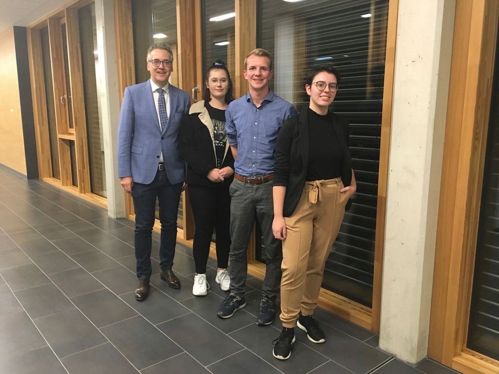 Foto von re nach li: 2. Schülersprecherin Tamara Schmelmer, 1. Schülersprecher Daniel Hecht, 3. Schülersprecherin Laura Schröder und der Ständige Vertreter des Schulleiters StD Ulrich Fischer.
