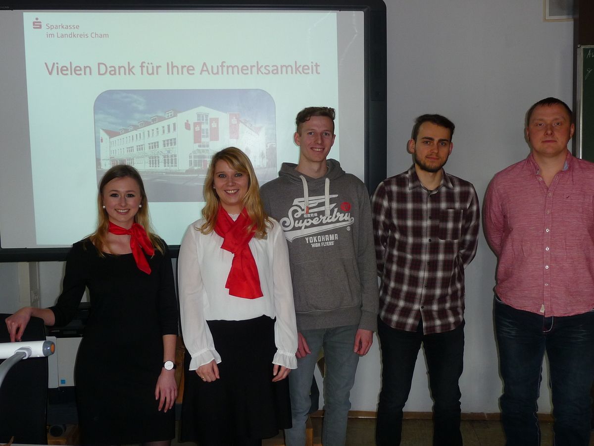 Im Bild: Frau Fischer und Frau Meier von der Sparkasse Cham sowie die angehenden Energie-Effizienz-Experten.