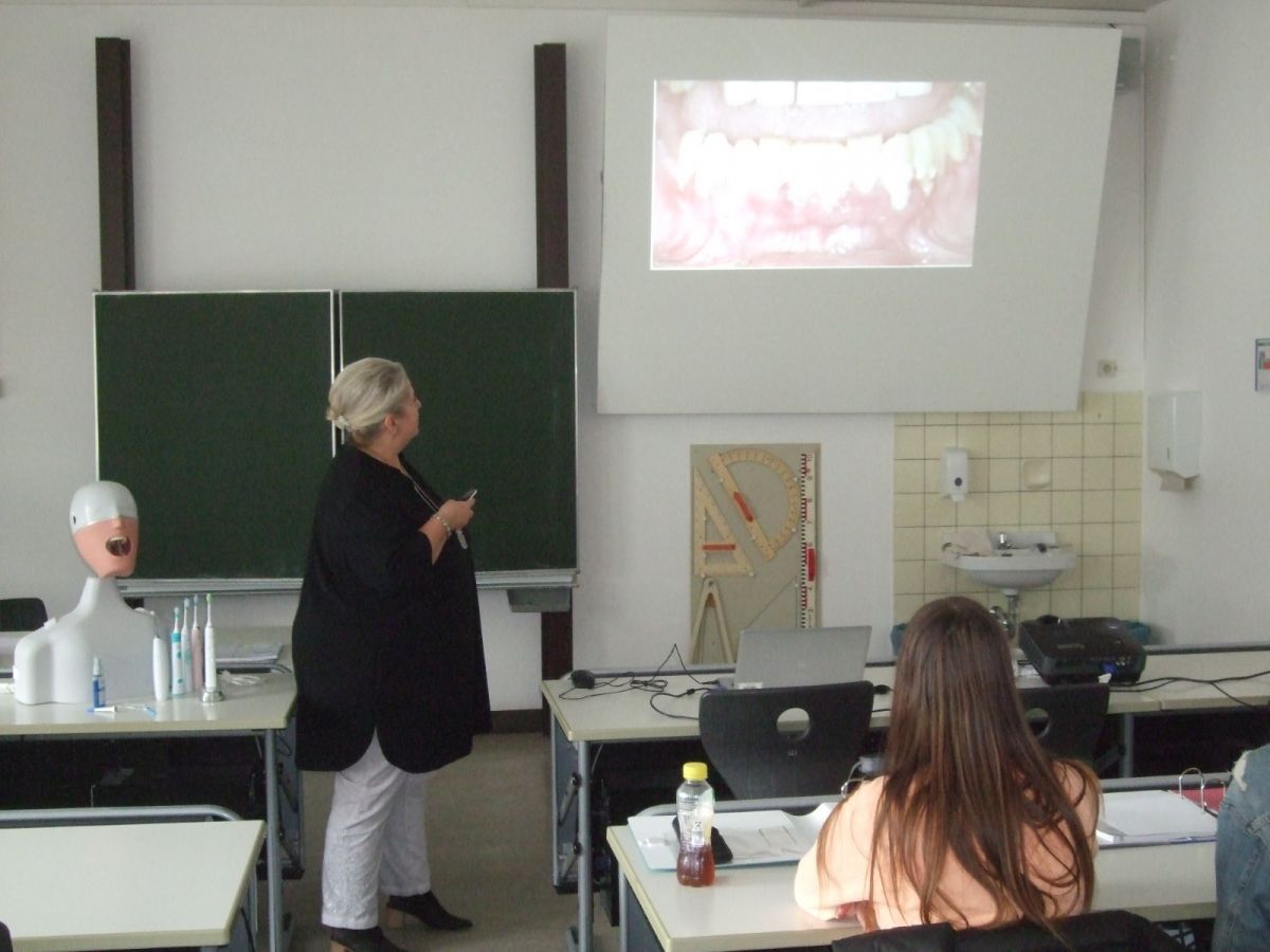 Am 25. und 27. September wohnten die Schülerinnen der GZH 12 A und B einem Vortrag von Frau Wittmann-Wender zum Thema Mundhygiene bei.
