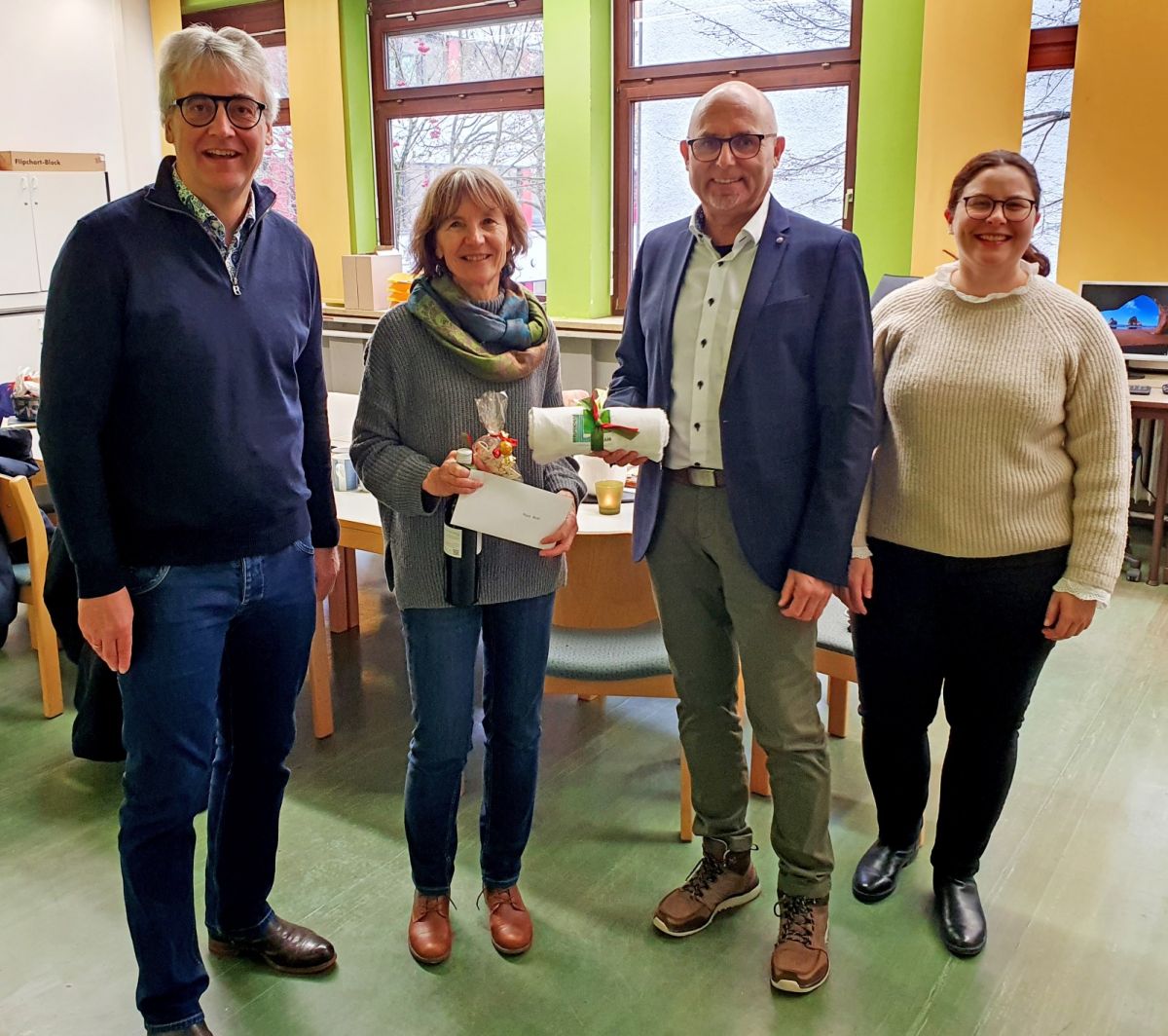 Maria Pechtl, Abteilungsleiterin Berufsschule Plus, geschätzt im Kollegium und eine ebenso beliebte Lehrkraft bei den SchülerInnen in den Berufsintegrationsklassen. Glückwünsche überbrachte auch Julia Mörsdorf, stellvertretend für den VLB und Personalrat. Wir wünschen weiterhin alles Gute und viel Gesundheit.