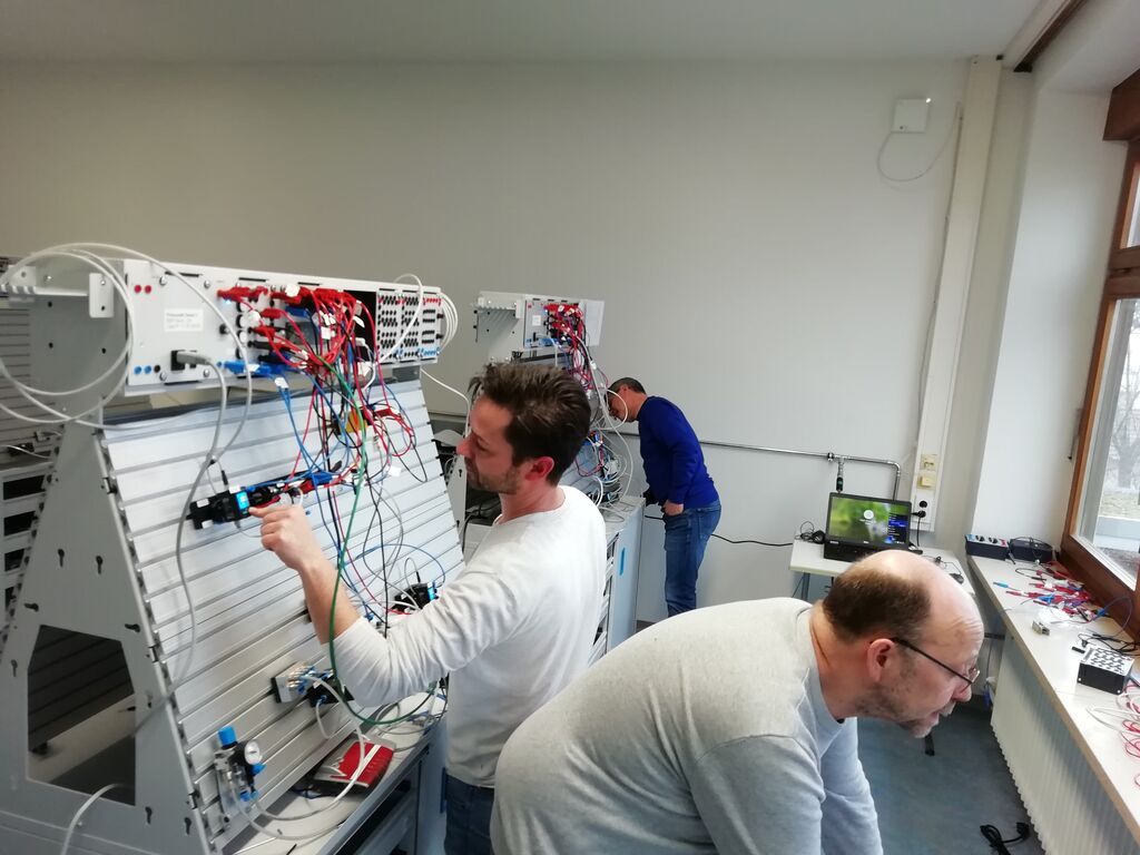 Im Rahmen einer dreitägigen Fortbildung arbeiteten sich die Rodinger Kollegen in die Möglichkeiten der digitalen Vernetzung von Steuerungselementen der Firma Festo ein. Mit Hilfe der neu angeschafften Hard- und Software ist es nun möglich, Informationen und Zustände von Automatisierungsprozessen zu erfassen und weiterzuverarbeiten.