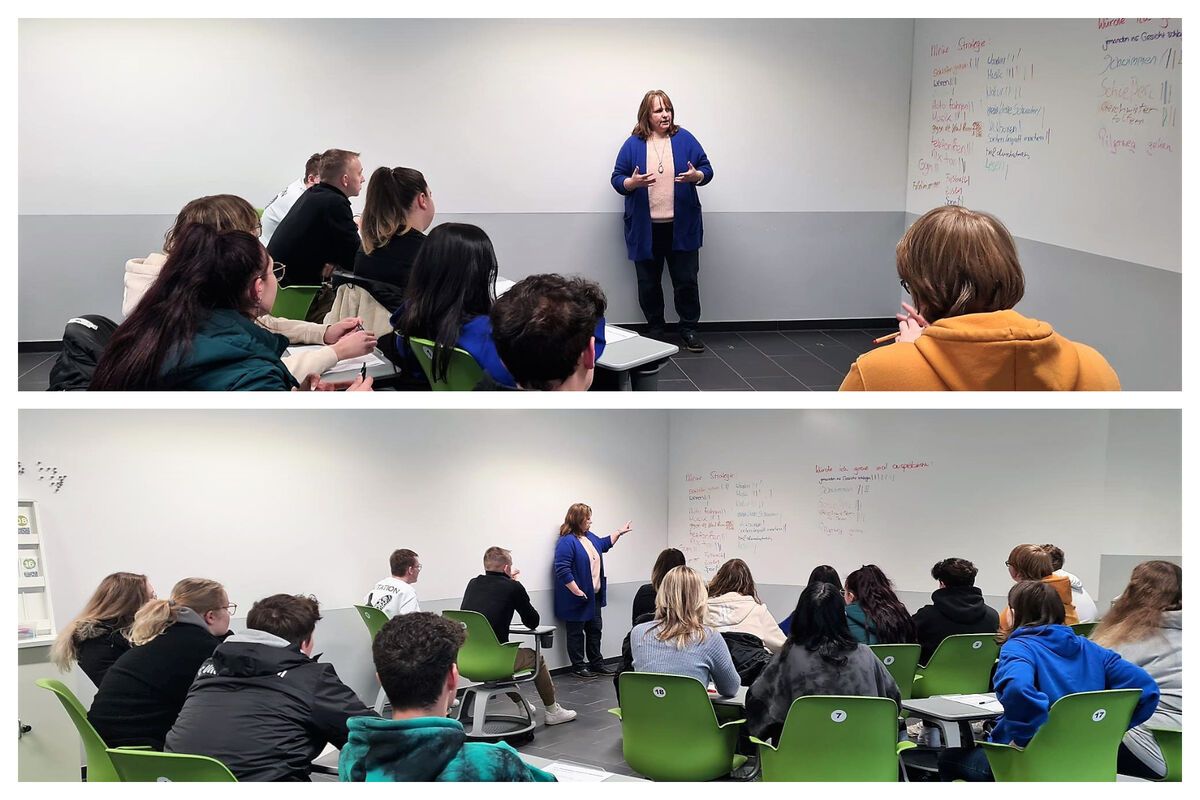 Im Anschluss sprachen sie über ihre persönlichen Strategien zur Stressbewältigung. Diese sind sehr vielfältig - u. a. wurden hier Kickboxen, Schlafen, Fußball, Lesen, Musik, Haustiere und viele weitere Möglichkeiten angesprochen.