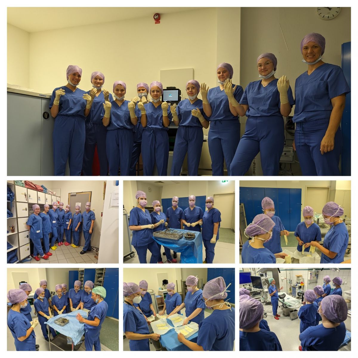 Dabei wurden auch prüfungsrelevante Themen wie Anziehen steriler Handschuhe oder Aufdecken bei chirurgischen Eingriffen eingeübt.