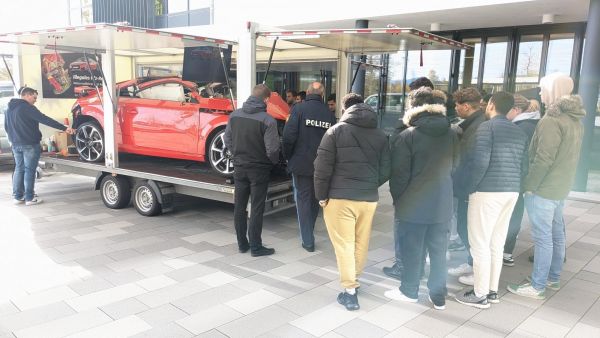 Am Donnerstag besuchten zwei Beamte der Bayerischen Polizei die Berufsschule Cham in der Badstraße. Dabei wurden die Schüler für die Gefahren im Straßenverkehr sensibilisiert sowie über die möglichen und gravierenden Folgen aufgeklärt. Ein Dank gilt der Bayerischen Polizei insbesondere den beiden Polizeibeamten H. Günzkofer und H. Linsmeier. (Bild: Christoph Selmer)