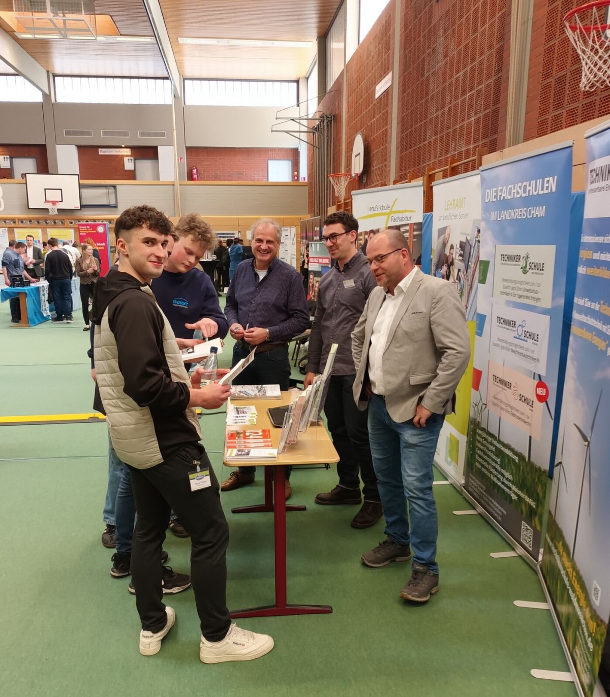 Rund 1300 Jugendliche informierten sich über berufliche Perspektiven, insbesondere in den Bereichen Fertigungstechnik, Elektrotechnik/Mechatronik sowie über die Fachschulen für Elektrotechnik, Maschinenbau und Umweltschutztechnik. Am Stand der Berufsschule Cham standen die Lehrkräfte Franz Gleixner, Christian Roßmann, Manfred Senft und Hubert Sperl für Fragen zur Verfügung.