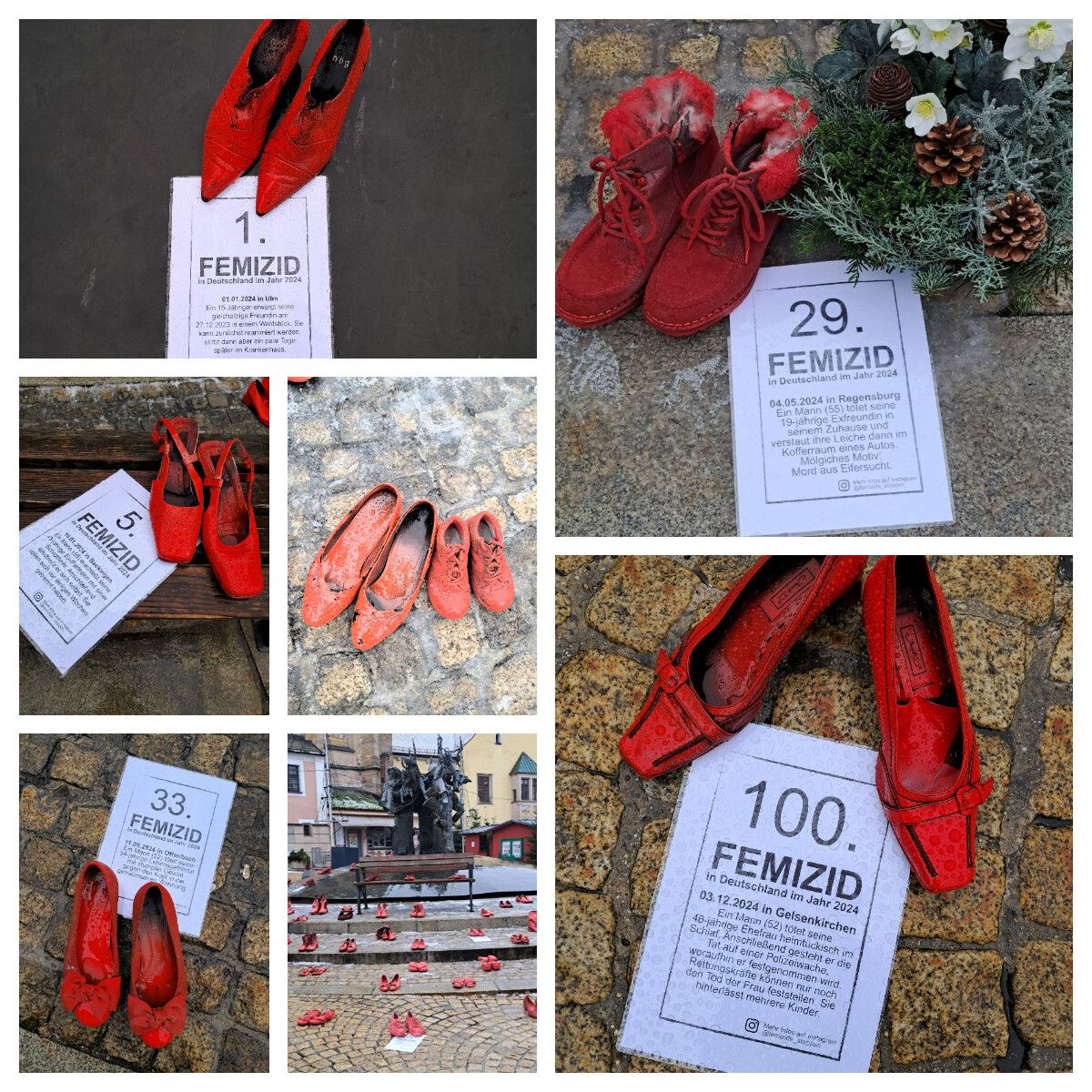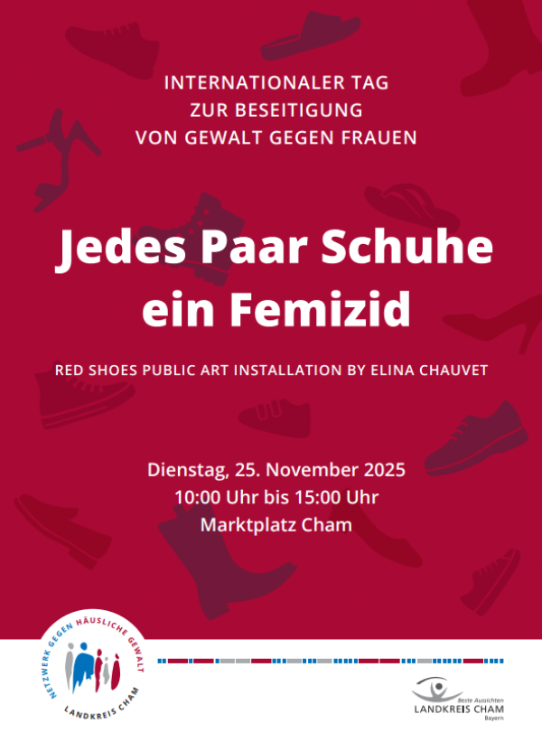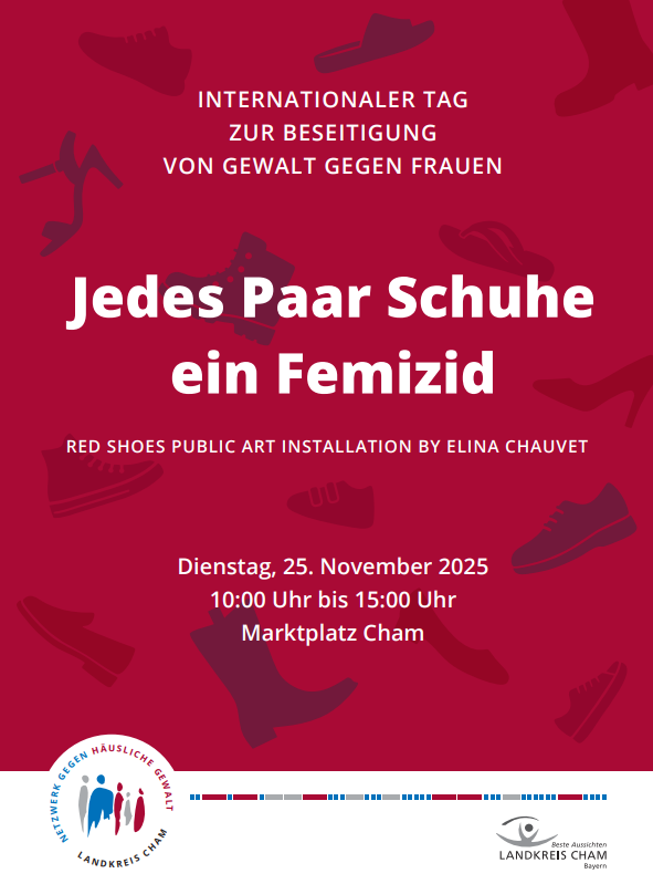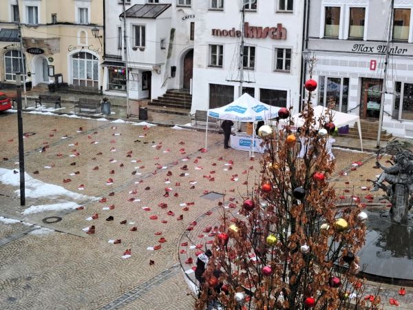 Der Gedenktag war am Dienstag dieser Woche, dazu wurden 360 rote Schuhpaare auf dem Chamer Marktplatz platziert, um an die durch Femizide getöteten Frauen des Jahres 2024 zu erinnern. Neben den Schuhen lagen Infotafeln zu den einzelnen Femiziden, Infostände mit Material rund um das Thema „häusliche und geschlechterspezifische Gewalt“ waren aufgebaut.
