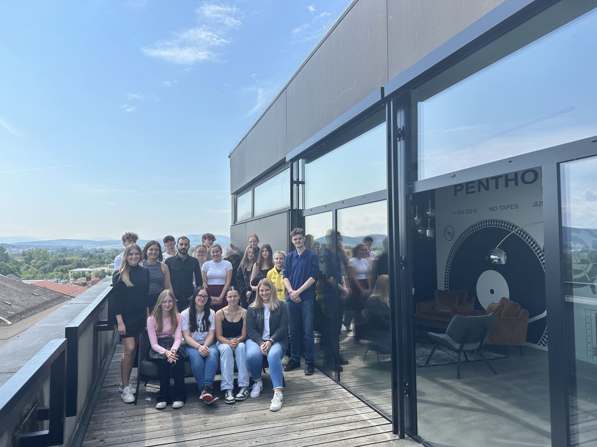 Der Besuch diente dazu, genau diese Inhalte live in einem echten Unternehmen zu erleben und zu verstehen. Nach einer freundlichen Begrüßung im Besprechungsraum „Mathias“, benannt nach dem Firmengründer Mathias Frey, wurden wir von Frau Pongratz (Visual Merchandising) und Frau Stroetmann (Personalwesen) empfangen. In einer anschaulichen PowerPoint-Präsentation wurde uns das Visual Merchandising der Firma Frey erklärt – inklusive Nachhaltigkeitskonzepten, Warenträger-Anordnung,, Private Shopping-Angeboten und der Bedeutung von Zonen im Verkaufsraum. Besonders interessant war es, zu sehen, wie Theorie und Praxis sich überschneiden und wie viel Planung hinter einem modernen Einkaufserlebnis steckt. Anschließend durften wir bei einer Führung unter anderem die Private Shopping-Lounges, die Wäscheabteilung mit besonderen Warenträgern und den Shop 11Teamsport besichtigen. Zum Schluss gab es für jede*n eine Frey-Tasche mit kleinen Aufmerksamkeiten – eine schöne Geste, die uns sehr gefreut hat. Wir verabschiedeten uns mit großem Dank bei Frau Pongratz und Frau Stroetmann für diesen informativen und lehrreichen Einblick.