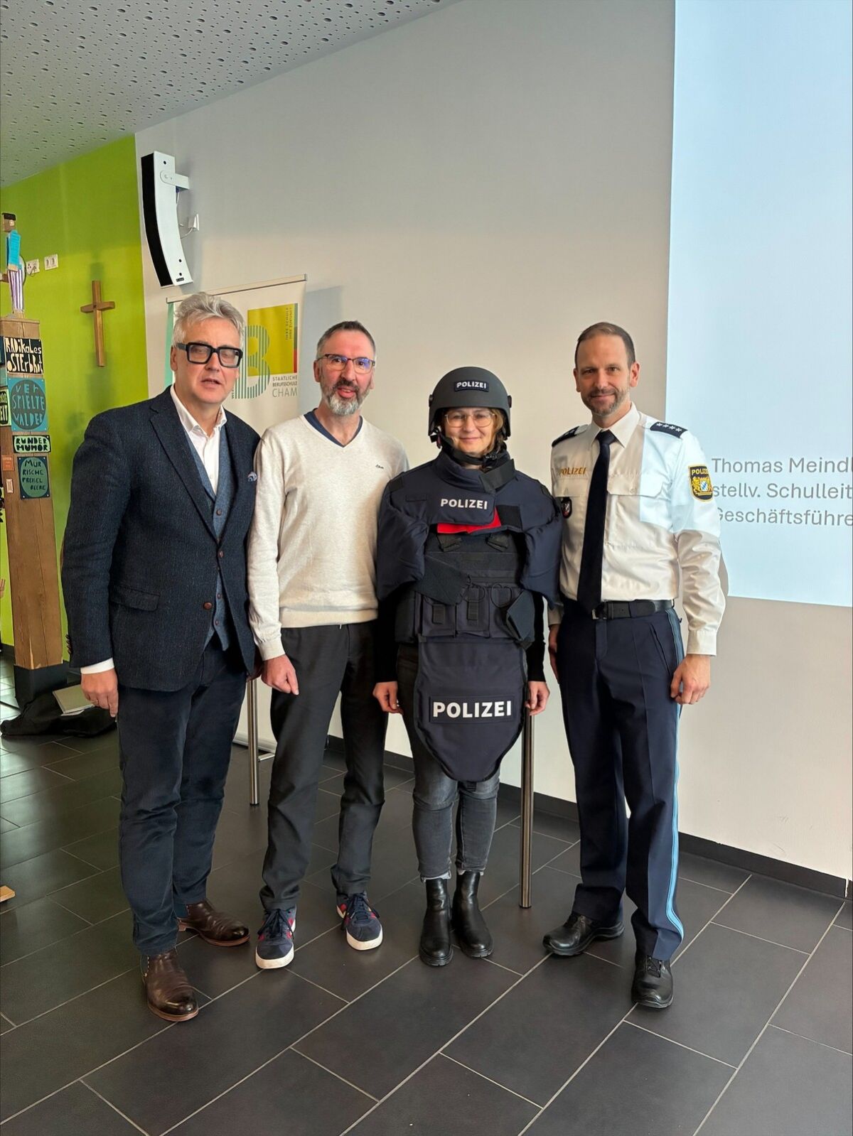 Das QmbS-Team und die Schulleitung einigten sich heuer gemeinsam auf das Thema Gefahrenlagen an Schulen. Als Referenten konnten Marco Müller, stv. Dienststellenleiter der Polizeiinspektion Cham, KBI Marco Greil, Feuerwehr Inspektionsbereich Cham, sowie Thomas Meindl, stv. Einsatzleiter Krisenintervention, gewonnen werden. Die Veranstaltung bot einen umfassenden Überblick über aktuelle Risiken und Präventionsmaßnahmen an schulischen Standorten. Durch praxisnahe Fallbeispiele erhielten die Teilnehmenden wertvolle Einblicke in Vorbeugung, Alarmierungsketten und die Zusammenarbeit zwischen Schule, Polizei, Feuerwehr und Krisenintervention.