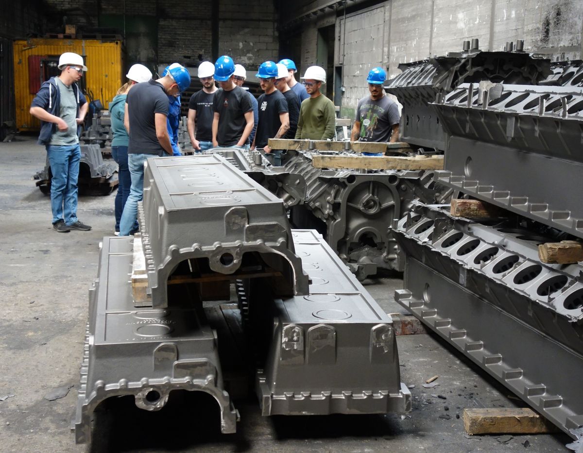 Nach einem informativen Vortrag über das Unternehmen wurde in den entsprechenden Werkshallen der Modellbau, die Fertigung von Kernen für Gießformen, der Schmelz- und Gießprozess selbst, das "Entpacken" bzw. "Putzen" der Gussteile aus den "verlorenen Formen" sowie die Endkontolle als wichtige Abschnitte beim Werdegang eines gigantischen Zylinderkurbelgehäuses aus Gusseisen vor Augen geführt. Die angehenden Maschinenbautechniker staunten nicht schlecht, als diese den Abguss eines dieser Motorblöcke hautnah erleben durften.