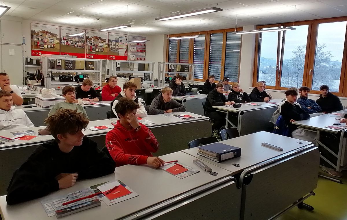Die Schüler der Abschlussklasse EEG 13 A informierte Herr Hackner von der Firma Dehn SE Blitzschutz, Neumarkt, am Donnerstag, den 20.11.2025 über äußeren und inneren Blitzschutz an Gebäuden.